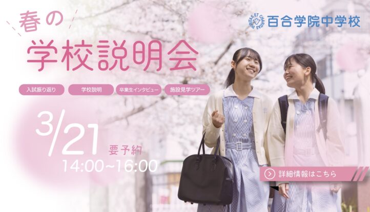 認定こども園百合学院幼稚園 百合学院小学校 百合学院中学校 百合学院高等学校 百合学院について 百合学院の教育 教職員採用情報 2026年02月04日(水) 修学旅行第2日 2026年02月03日(火) 修学旅行第1日 2026年02月02日(月) 2月2日(月)の百合学院小学校 2026年01月31日(土) C日程入試 2026年01月30日(金) スキー教室第2日 2026年01月29日(木) 1月29日(木)の百合学院小学校
